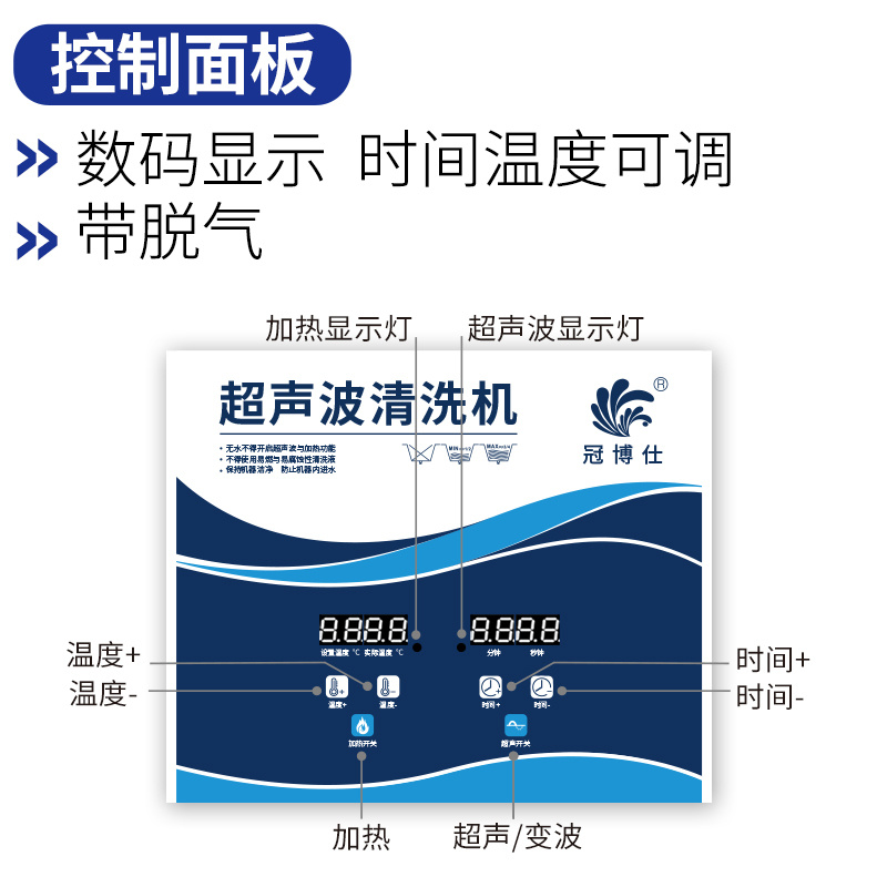 - 数码显示:数码显示清洗时间且有倒计时读秒功能;